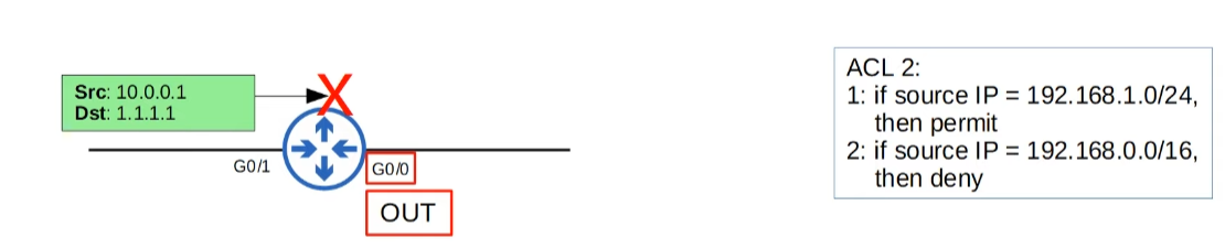 Also, ACLs can be applied for traffic inbound (entering the interface) or outbound (leaving the interface)