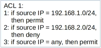 ACLs are an ordered sequence of ACEs (Access Control Entries). Think of them as lines of “if” and “elif” (Python) in a programming language which will be executed sequentially from top to bottom, and when it finds a match it will ignore the rest of the code.