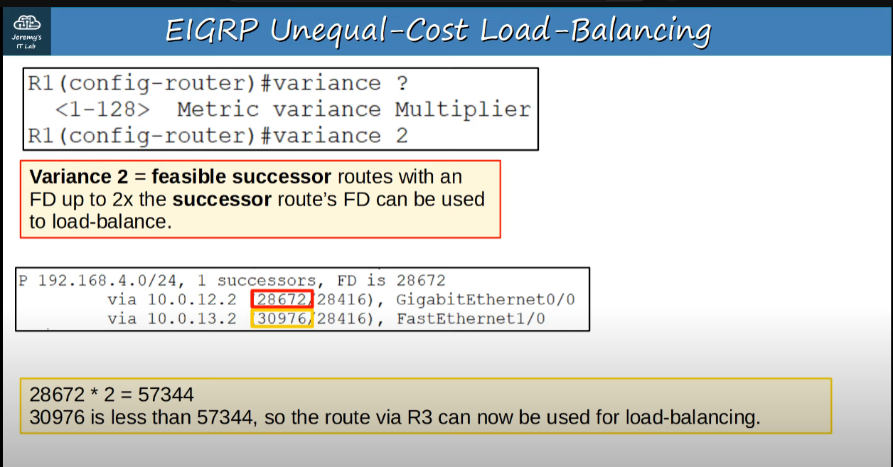 - Is the only IGP that can perform unequal-cost load-balancing (by default it performs ECMP over 4 paths like RIP). In other words, it can send load-balance traffic between links that have different costs.