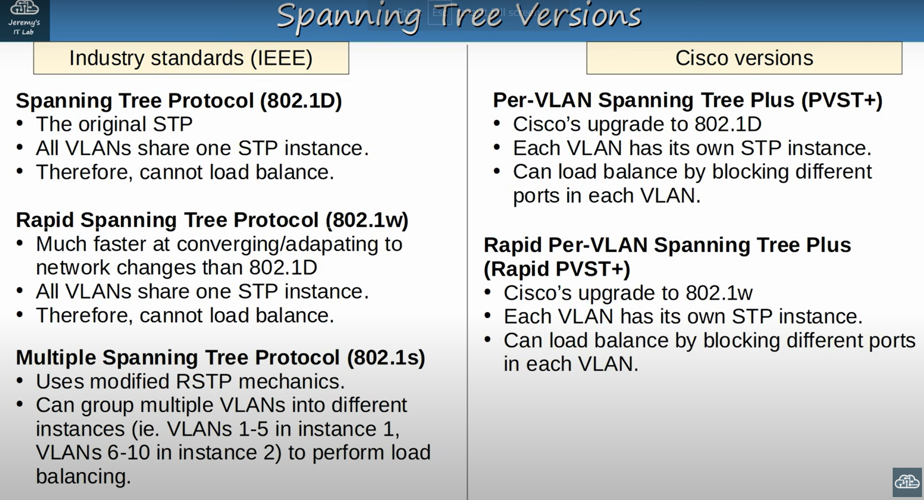 | Speed | STP Cost | RSTP Cost |